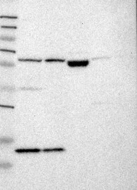 A Western blot analysis is performed on a panel of human tissues and cell lines to evaluate antibody specificity. For antibodies with unreliable result a revalidation using an over-expression lysate is performed.