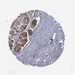 Antibody staining in the annotated cell types in the current human tissue is reported as not detected, low, medium, or high, based on conventional immunohistochemistry profiling in selected tissues. This score is based on the combination of the staining intensity and fraction of stained cells.