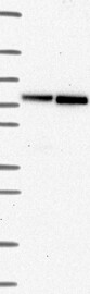 A Western blot analysis is performed on a panel of human tissues and cell lines to evaluate antibody specificity. For antibodies with unreliable result a revalidation using an over-expression lysate is performed.