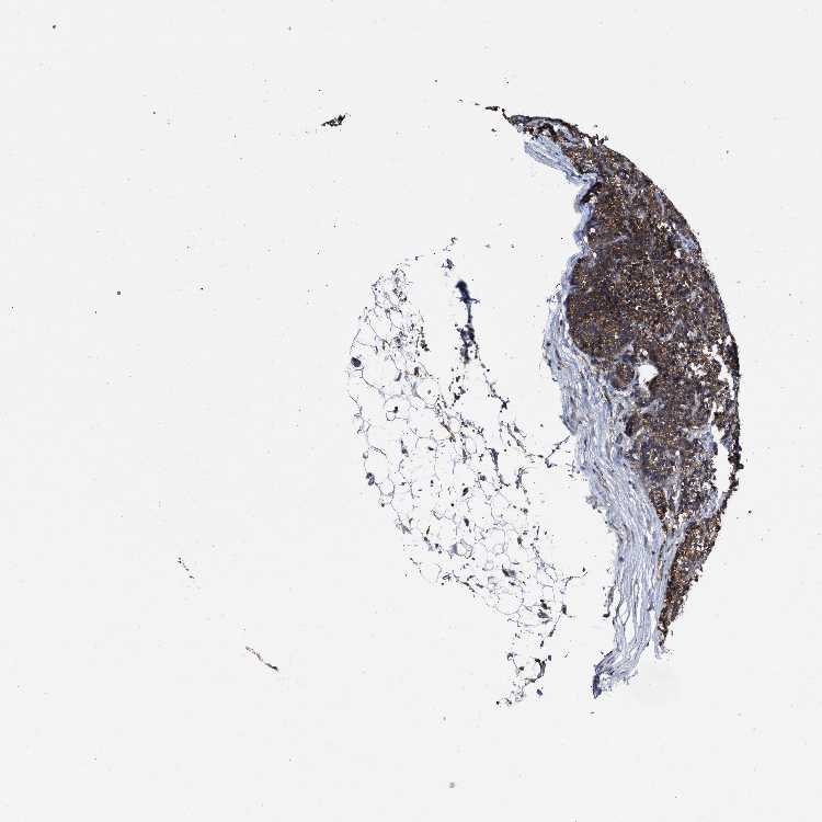 Antibody staining in the annotated cell types in the current human tissue is reported as not detected, low, medium, or high, based on conventional immunohistochemistry profiling in selected tissues. This score is based on the combination of the staining intensity and fraction of stained cells.