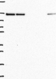 A Western blot analysis is performed on a panel of human tissues and cell lines to evaluate antibody specificity. For antibodies with unreliable result a revalidation using an over-expression lysate is performed.