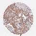 Antibody staining in the annotated cell types in the current human tissue is reported as not detected, low, medium, or high, based on conventional immunohistochemistry profiling in selected tissues. This score is based on the combination of the staining intensity and fraction of stained cells.