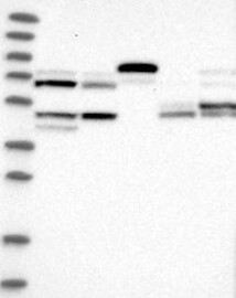 A Western blot analysis is performed on a panel of human tissues and cell lines to evaluate antibody specificity. For antibodies with unreliable result a revalidation using an over-expression lysate is performed.