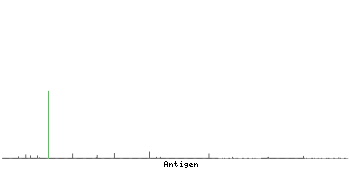 At the top of the view, the position of the antigen (identified by the corresponding HPA identifier) is shown as a green bar. A yellow triangle on the bar indicates a <100% sequence identity to the protein target.
