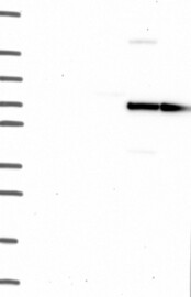 A Western blot analysis is performed on a panel of human tissues and cell lines to evaluate antibody specificity. For antibodies with unreliable result a revalidation using an over-expression lysate is performed.