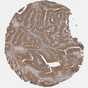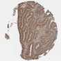 Antibody staining in the annotated cell types in the current human tissue is reported as not detected, low, medium, or high, based on conventional immunohistochemistry profiling in selected tissues. This score is based on the combination of the staining intensity and fraction of stained cells.