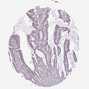 Antibody staining in the annotated cell types in the current human tissue is reported as not detected, low, medium, or high, based on conventional immunohistochemistry profiling in selected tissues. This score is based on the combination of the staining intensity and fraction of stained cells.