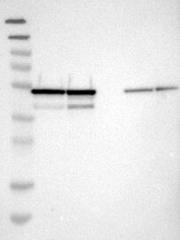 A Western blot analysis is performed on a panel of human tissues and cell lines to evaluate antibody specificity. For antibodies with unreliable result a revalidation using an over-expression lysate is performed.