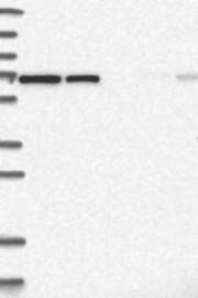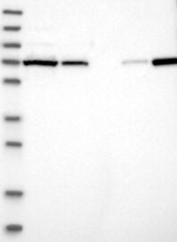 A Western blot analysis is performed on a panel of human tissues and cell lines to evaluate antibody specificity. For antibodies with unreliable result a revalidation using an over-expression lysate is performed.