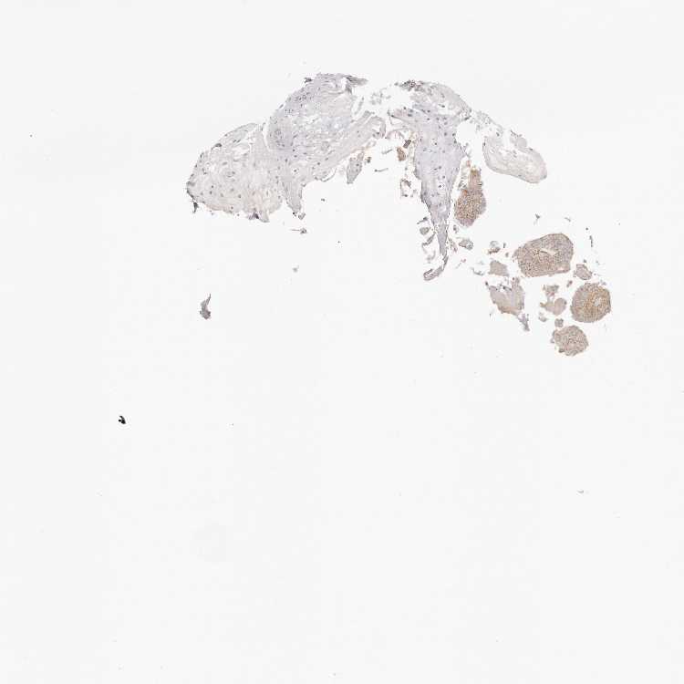 Antibody staining in the annotated cell types in the current human tissue is reported as not detected, low, medium, or high, based on conventional immunohistochemistry profiling in selected tissues. This score is based on the combination of the staining intensity and fraction of stained cells.