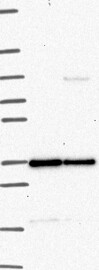 A Western blot analysis is performed on a panel of human tissues and cell lines to evaluate antibody specificity. For antibodies with unreliable result a revalidation using an over-expression lysate is performed.