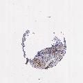 Antibody staining in the annotated cell types in the current human tissue is reported as not detected, low, medium, or high, based on conventional immunohistochemistry profiling in selected tissues. This score is based on the combination of the staining intensity and fraction of stained cells.