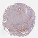 Antibody staining in the annotated cell types in the current human tissue is reported as not detected, low, medium, or high, based on conventional immunohistochemistry profiling in selected tissues. This score is based on the combination of the staining intensity and fraction of stained cells.