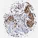 Antibody staining in the annotated cell types in the current human tissue is reported as not detected, low, medium, or high, based on conventional immunohistochemistry profiling in selected tissues. This score is based on the combination of the staining intensity and fraction of stained cells.