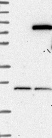 A Western blot analysis is performed on a panel of human tissues and cell lines to evaluate antibody specificity. For antibodies with unreliable result a revalidation using an over-expression lysate is performed.