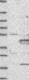 A Western blot analysis is performed on a panel of human tissues and cell lines to evaluate antibody specificity. For antibodies with unreliable result a revalidation using an over-expression lysate is performed.