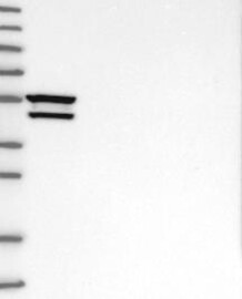 A Western blot analysis is performed on a panel of human tissues and cell lines to evaluate antibody specificity. For antibodies with unreliable result a revalidation using an over-expression lysate is performed.