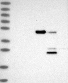 A Western blot analysis is performed on a panel of human tissues and cell lines to evaluate antibody specificity. For antibodies with unreliable result a revalidation using an over-expression lysate is performed.