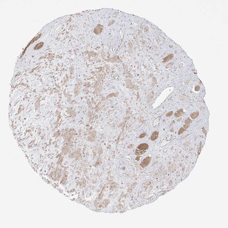 Antibody staining in the annotated cell types in the current human tissue is reported as not detected, low, medium, or high, based on conventional immunohistochemistry profiling in selected tissues. This score is based on the combination of the staining intensity and fraction of stained cells.