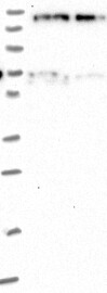 A Western blot analysis is performed on a panel of human tissues and cell lines to evaluate antibody specificity. For antibodies with unreliable result a revalidation using an over-expression lysate is performed.