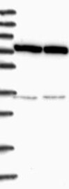 Antibody band pattern is confirmed by antibody HPA038845. Analysis performed using a standard panel of samples.