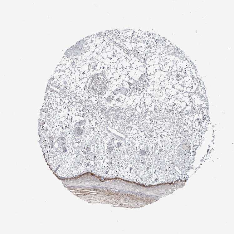 Antibody staining in the annotated cell types in the current human tissue is reported as not detected, low, medium, or high, based on conventional immunohistochemistry profiling in selected tissues. This score is based on the combination of the staining intensity and fraction of stained cells.