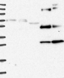 A Western blot analysis is performed on a panel of human tissues and cell lines to evaluate antibody specificity. For antibodies with unreliable result a revalidation using an over-expression lysate is performed.