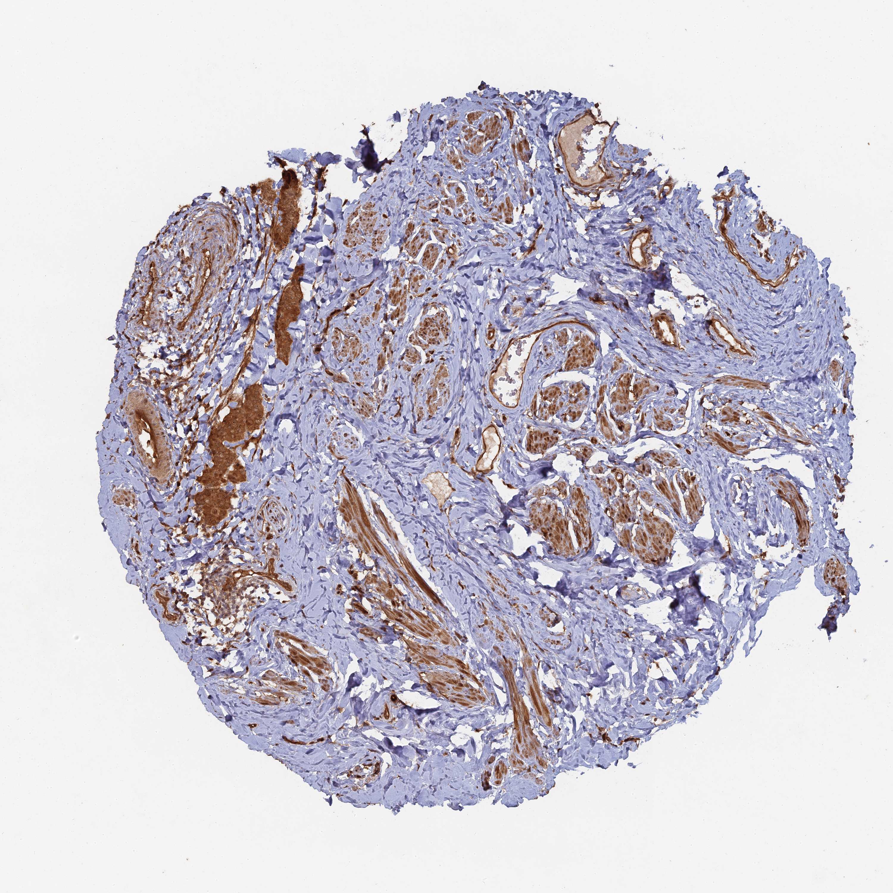 Antibody staining in the annotated cell types in the current human tissue is reported as not detected, low, medium, or high, based on conventional immunohistochemistry profiling in selected tissues. This score is based on the combination of the staining intensity and fraction of stained cells.