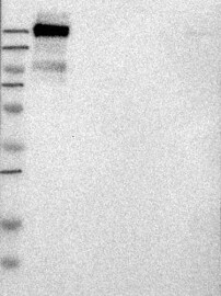 A Western blot analysis is performed on a panel of human tissues and cell lines to evaluate antibody specificity. For antibodies with unreliable result a revalidation using an over-expression lysate is performed.