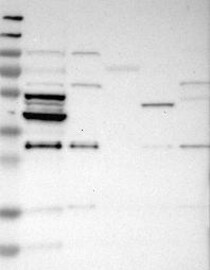 A Western blot analysis is performed on a panel of human tissues and cell lines to evaluate antibody specificity. For antibodies with unreliable result a revalidation using an over-expression lysate is performed.
