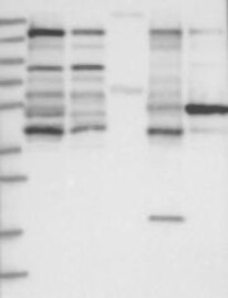 A Western blot analysis is performed on a panel of human tissues and cell lines to evaluate antibody specificity. For antibodies with unreliable result a revalidation using an over-expression lysate is performed.