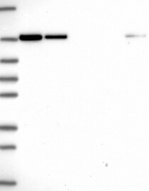 A Western blot analysis is performed on a panel of human tissues and cell lines to evaluate antibody specificity. For antibodies with unreliable result a revalidation using an over-expression lysate is performed.