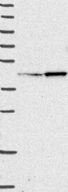 A Western blot analysis is performed on a panel of human tissues and cell lines to evaluate antibody specificity. For antibodies with unreliable result a revalidation using an over-expression lysate is performed.