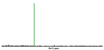 At the top of the view, the position of the antigen (identified by the corresponding HPA identifier) is shown as a green bar. A yellow triangle on the bar indicates a <100% sequence identity to the protein target.
