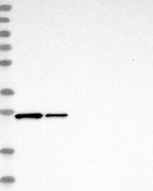 A Western blot analysis is performed on a panel of human tissues and cell lines to evaluate antibody specificity. For antibodies with unreliable result a revalidation using an over-expression lysate is performed.