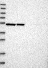 A Western blot analysis is performed on a panel of human tissues and cell lines to evaluate antibody specificity. For antibodies with unreliable result a revalidation using an over-expression lysate is performed.