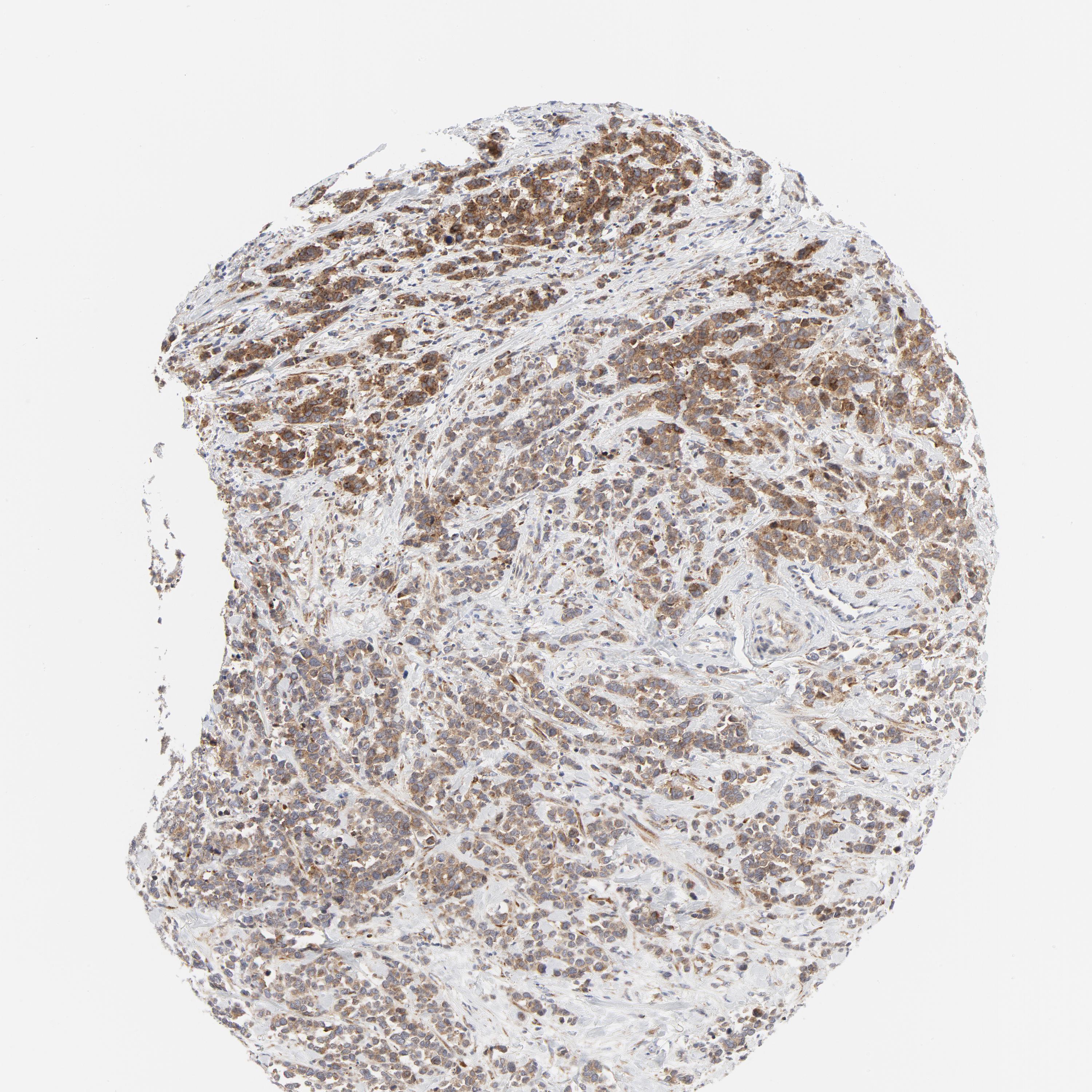 Antibody staining in the annotated cell types in the current human tissue is reported as not detected, low, medium, or high, based on conventional immunohistochemistry profiling in selected tissues. This score is based on the combination of the staining intensity and fraction of stained cells.