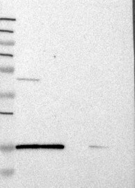 A Western blot analysis is performed on a panel of human tissues and cell lines to evaluate antibody specificity. For antibodies with unreliable result a revalidation using an over-expression lysate is performed.