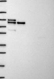A Western blot analysis is performed on a panel of human tissues and cell lines to evaluate antibody specificity. For antibodies with unreliable result a revalidation using an over-expression lysate is performed.