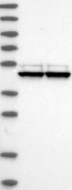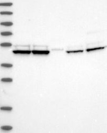 A Western blot analysis is performed on a panel of human tissues and cell lines to evaluate antibody specificity. For antibodies with unreliable result a revalidation using an over-expression lysate is performed.