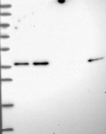 A Western blot analysis is performed on a panel of human tissues and cell lines to evaluate antibody specificity. For antibodies with unreliable result a revalidation using an over-expression lysate is performed.