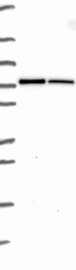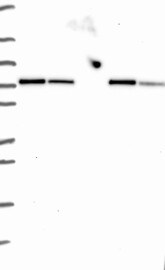 A Western blot analysis is performed on a panel of human tissues and cell lines to evaluate antibody specificity. For antibodies with unreliable result a revalidation using an over-expression lysate is performed.