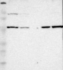A Western blot analysis is performed on a panel of human tissues and cell lines to evaluate antibody specificity. For antibodies with unreliable result a revalidation using an over-expression lysate is performed.