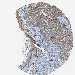 Antibody staining in the annotated cell types in the current human tissue is reported as not detected, low, medium, or high, based on conventional immunohistochemistry profiling in selected tissues. This score is based on the combination of the staining intensity and fraction of stained cells.