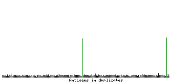 At the top of the view, the position of the antigen (identified by the corresponding HPA identifier) is shown as a green bar. A yellow triangle on the bar indicates a <100% sequence identity to the protein target.