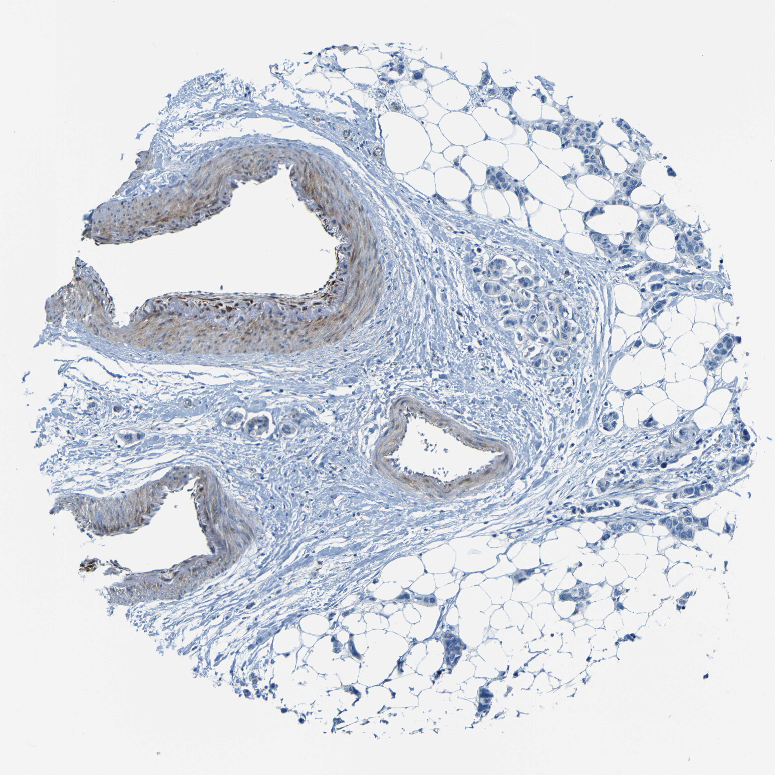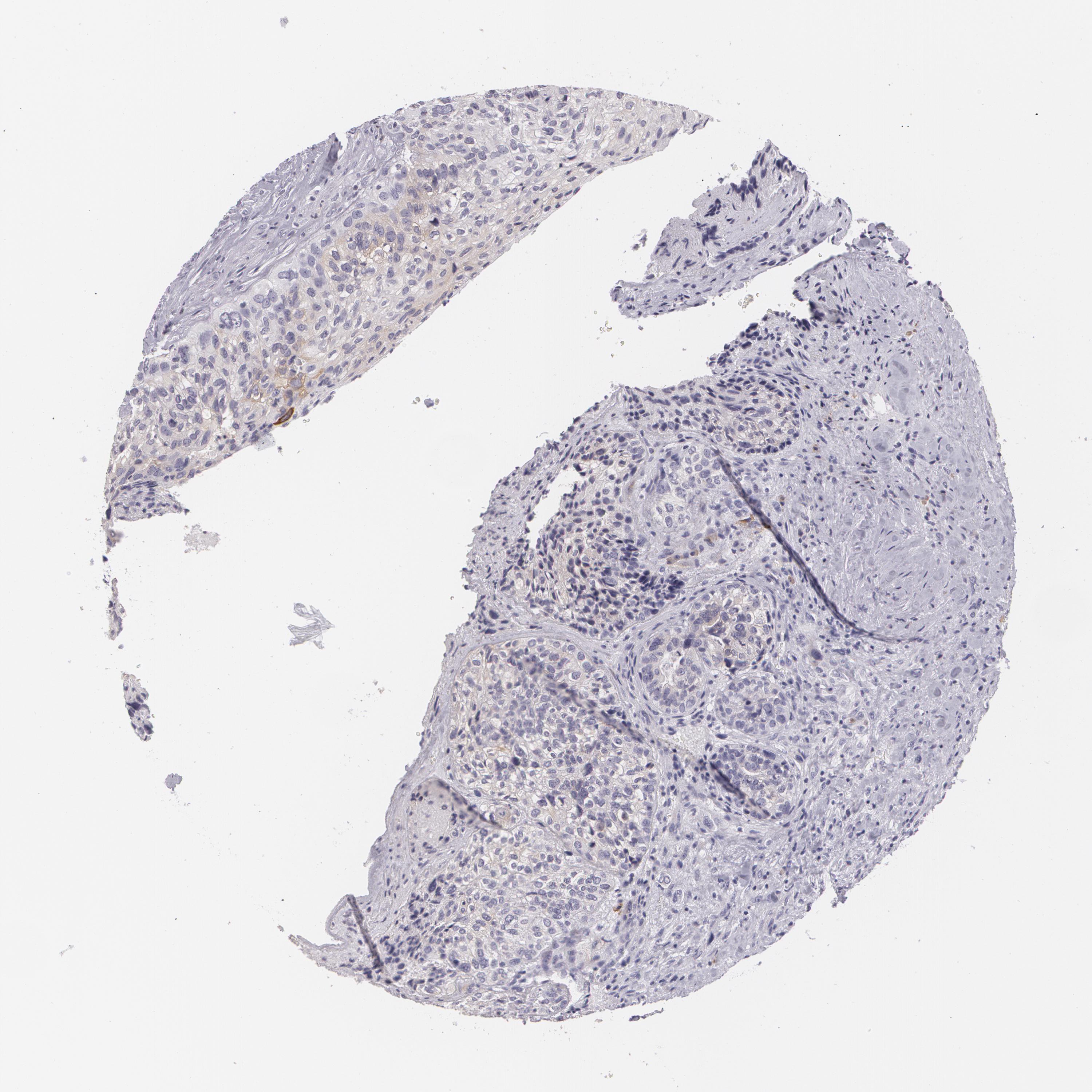 Antibody staining in the annotated cell types in the current human tissue is reported as not detected, low, medium, or high, based on conventional immunohistochemistry profiling in selected tissues. This score is based on the combination of the staining intensity and fraction of stained cells.
