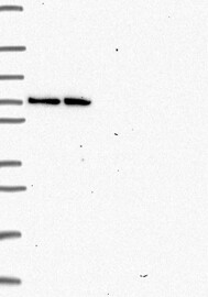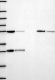 A Western blot analysis is performed on a panel of human tissues and cell lines to evaluate antibody specificity. For antibodies with unreliable result a revalidation using an over-expression lysate is performed.