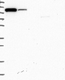 A Western blot analysis is performed on a panel of human tissues and cell lines to evaluate antibody specificity. For antibodies with unreliable result a revalidation using an over-expression lysate is performed.