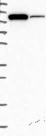 Antibody band pattern is confirmed by antibody HPA049032. Analysis performed using a standard panel of samples.