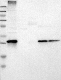 A Western blot analysis is performed on a panel of human tissues and cell lines to evaluate antibody specificity. For antibodies with unreliable result a revalidation using an over-expression lysate is performed.